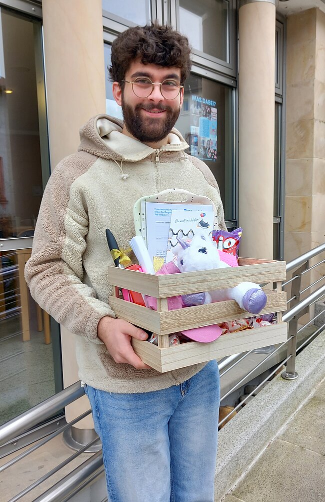 Jetzt haben wir ihn im Rahmen eines Gottesdienstes im Haus der Familie verabschiedet ..... mit einem kleinen Paket, dessen Inhalt ihn an all das erinnern soll, was er in den vergangenen 6 Monaten so alles bei uns geleistet hat. Und ein super Zeugnis gab es natürlich auch - das hat er sich absolut verdient!